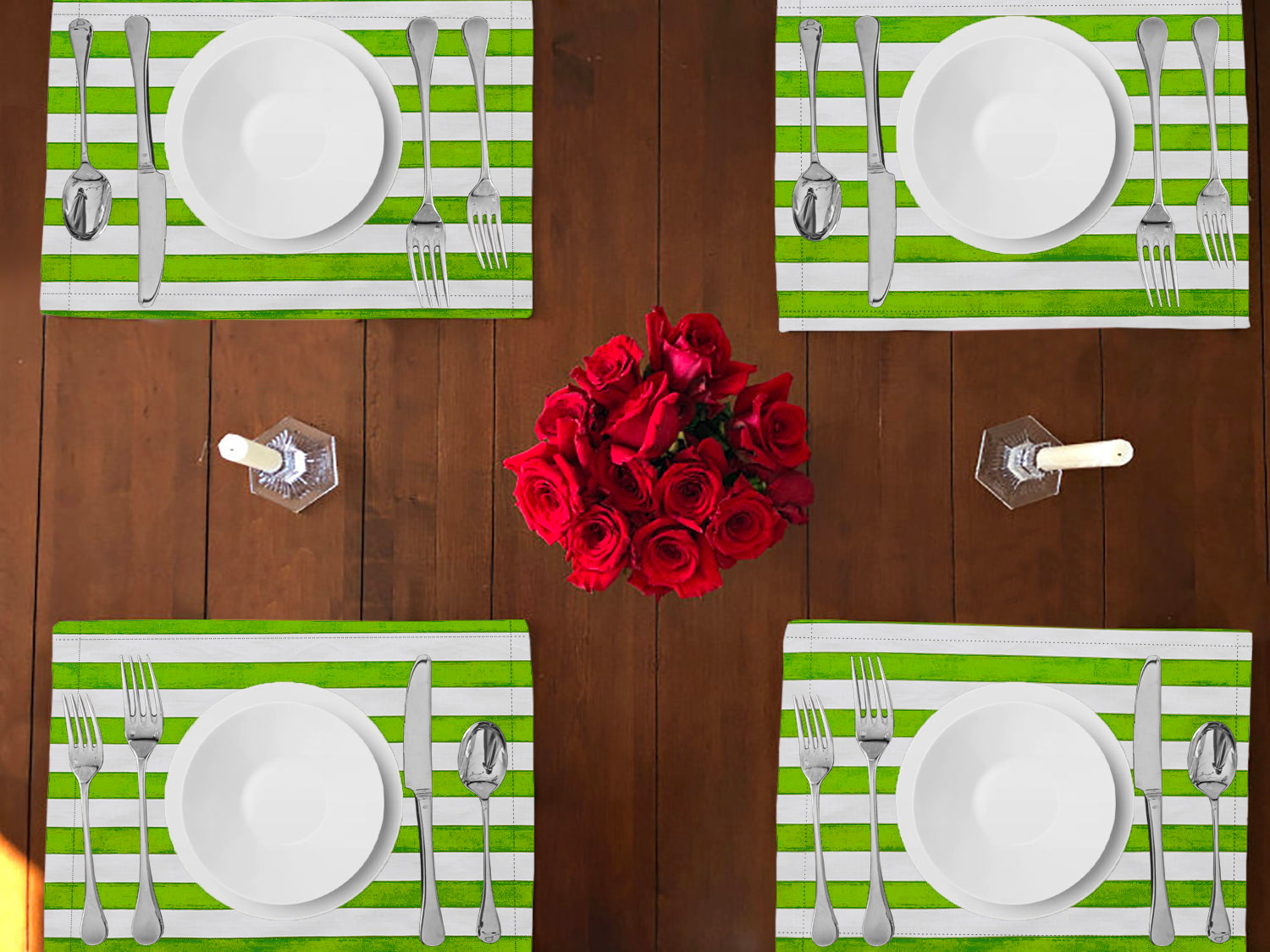 1" Wide Stripes Print Cotton Dinner Table Placemats Holiday Home Decoration 13" x 19" (Pack of 4)