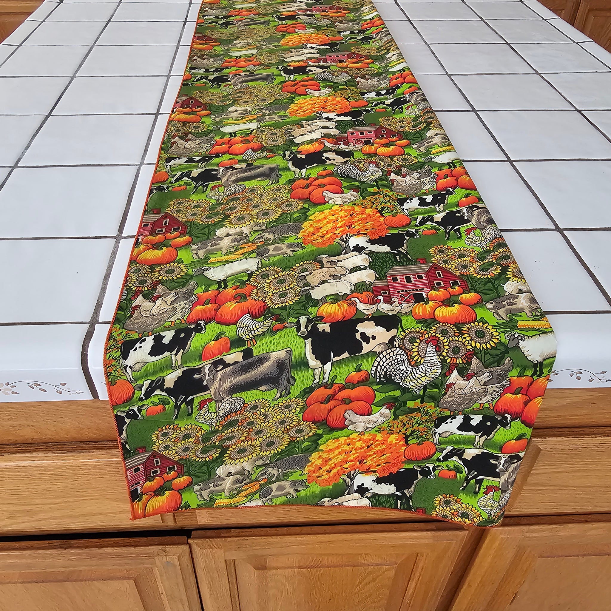 Autumn Fall Season Animal Farm Printed Poly Cotton Table Runner