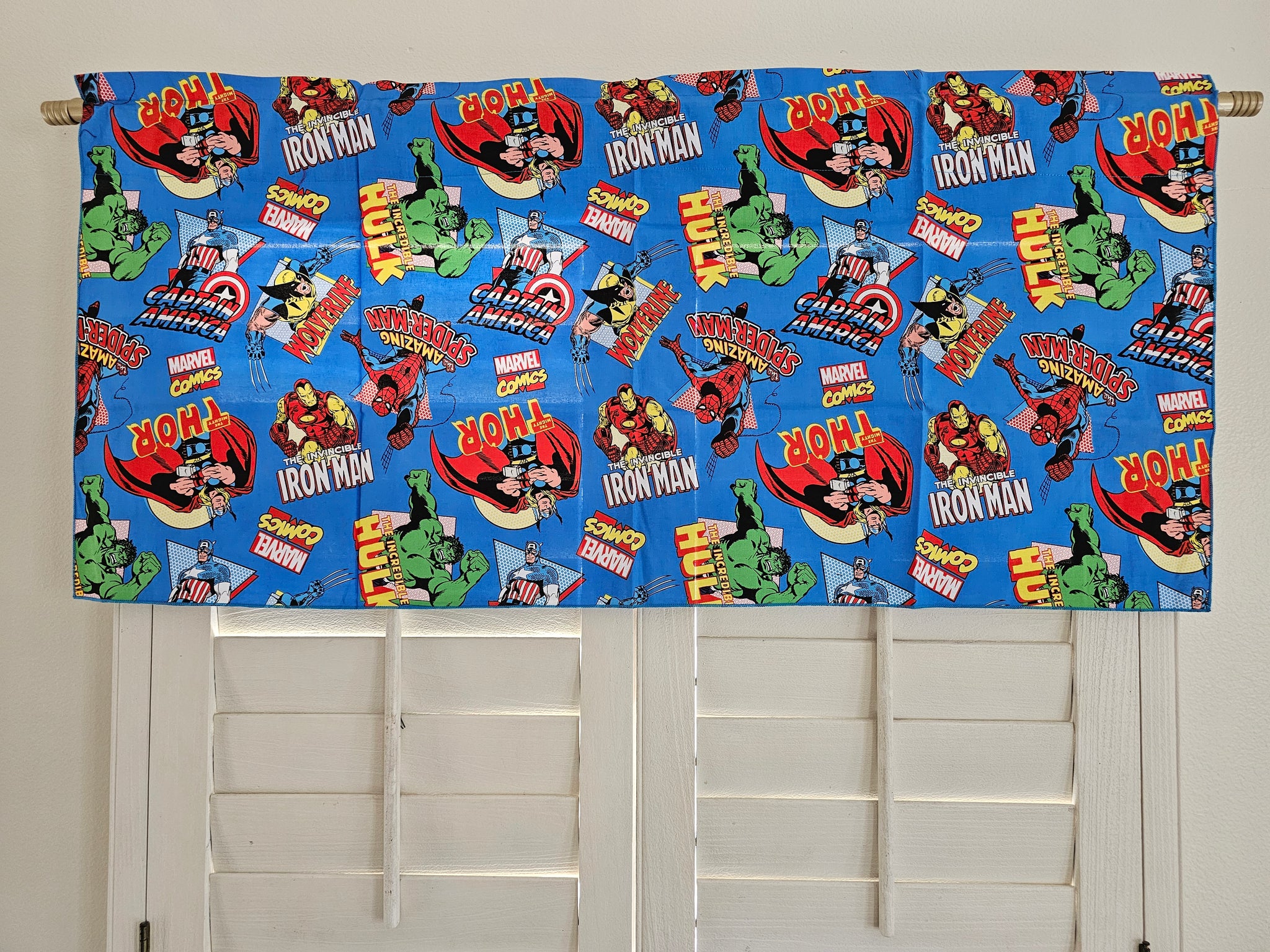 Closeout Comic Super Heroes Blue Cotton Window Valance 42" wide / 20" tall ~ Only 1 Available