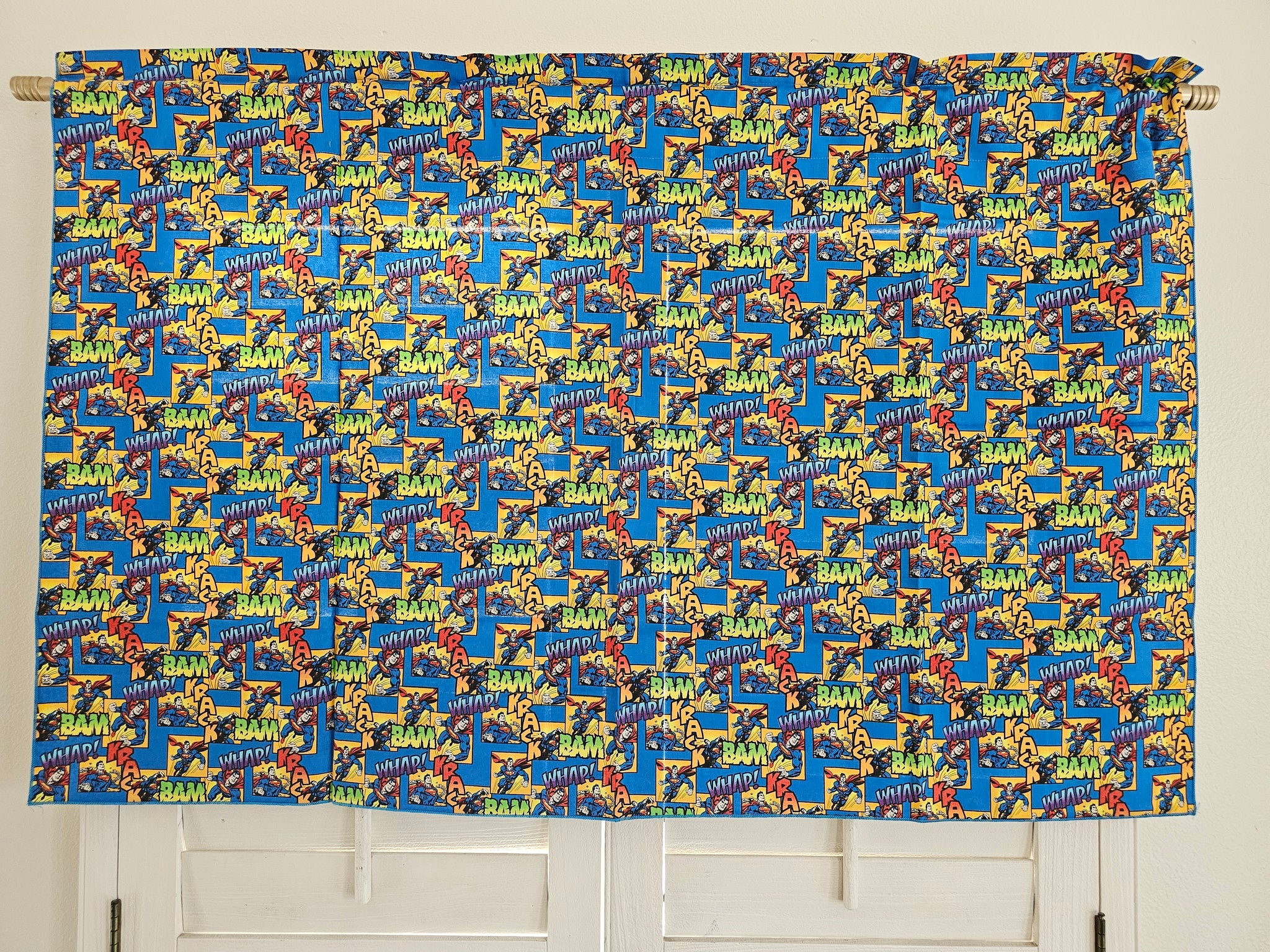 Closeout Super Hero Action Comic Cotton Window Valance 42" wide / 28" tall ~ Only 1 Available