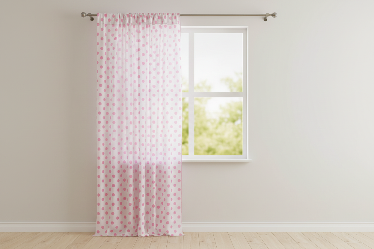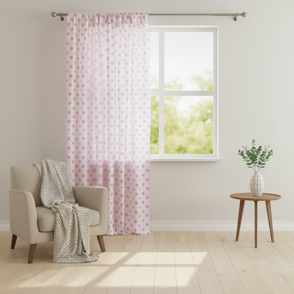 Cotton Curtain Polka Dots Print 58 Inch Wide - Pink on White