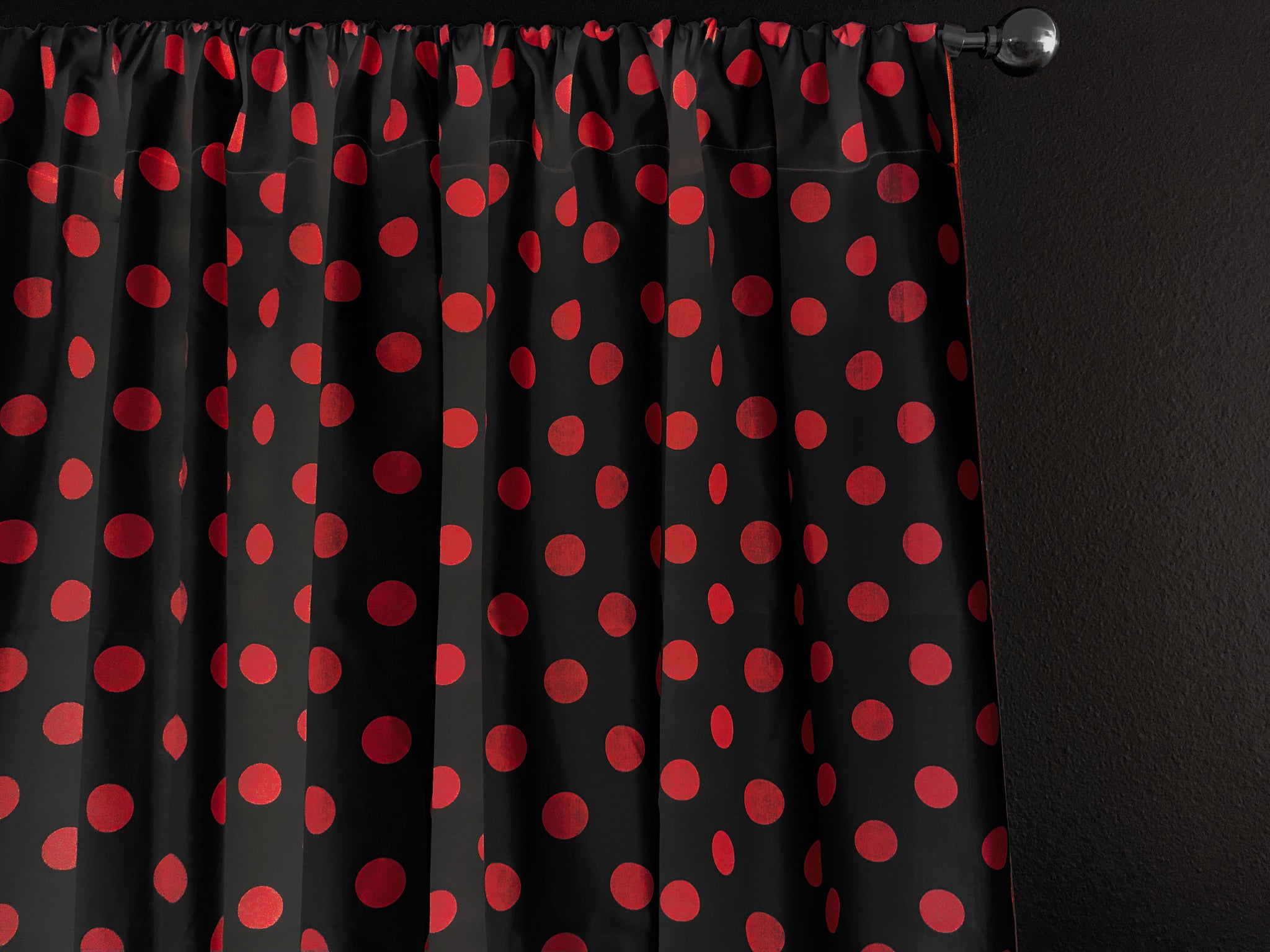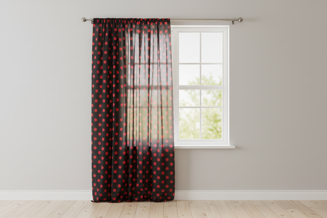 Cotton Curtain Polka Dots Print 58 Inch Wide - Red on Black