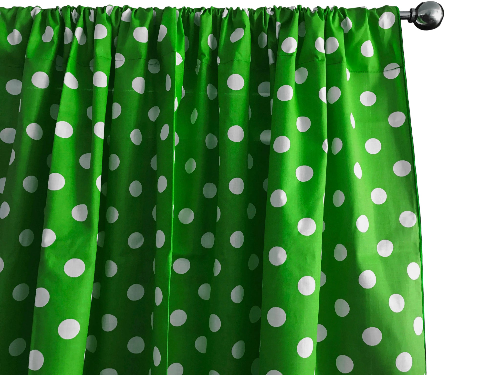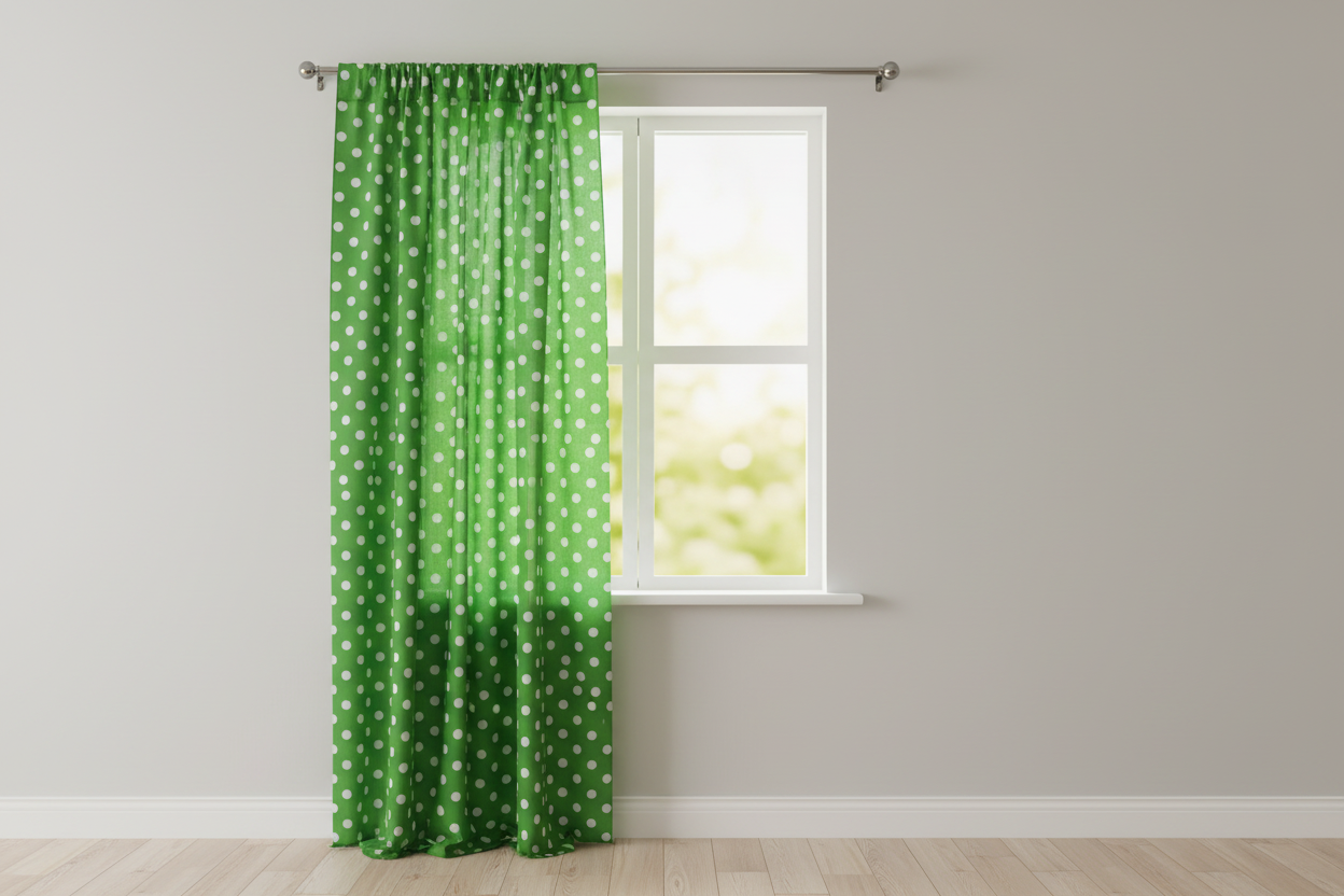 Cotton Curtain Polka Dots Print 58 Inch Wide - White on Green