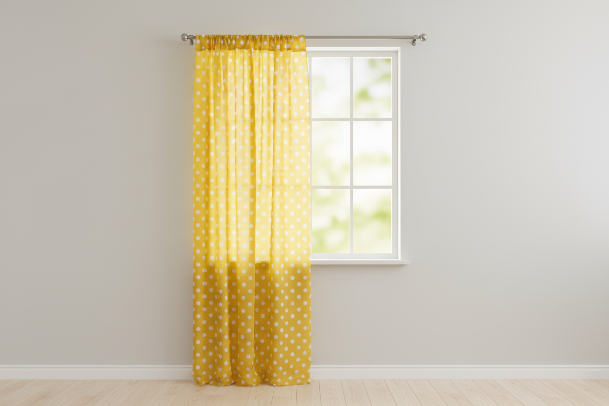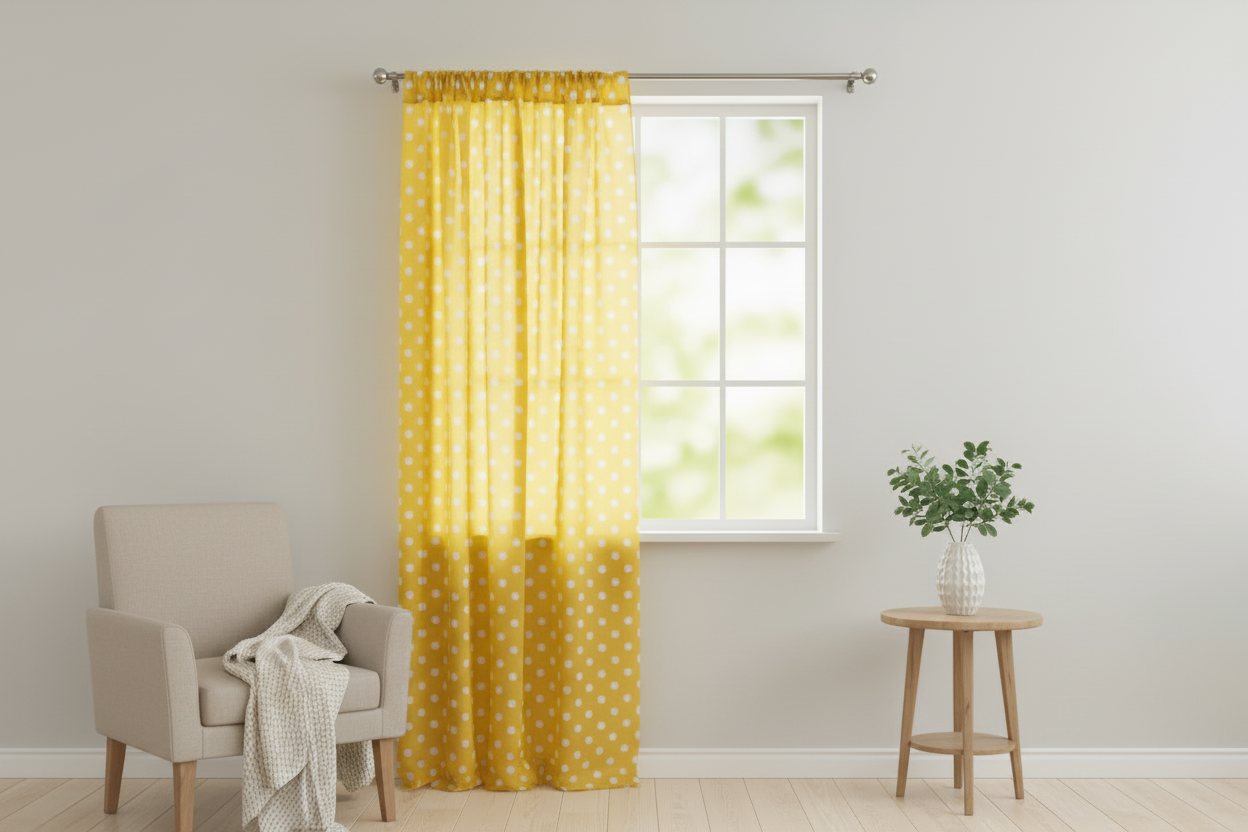 Cotton Curtain Polka Dots Print 58 Inch Wide - White on Yellow