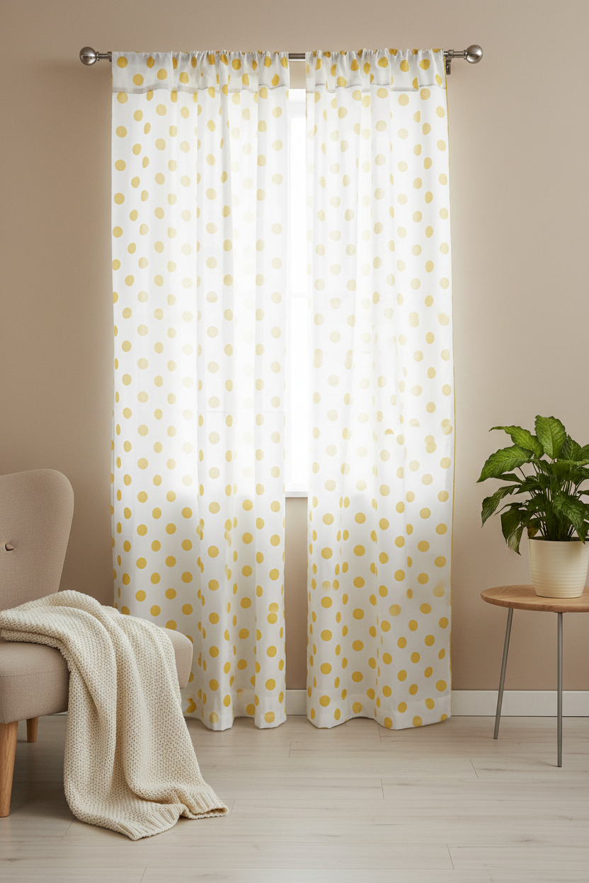 Cotton Curtain Polka Dots Print 58 Inch Wide - Yellow on White