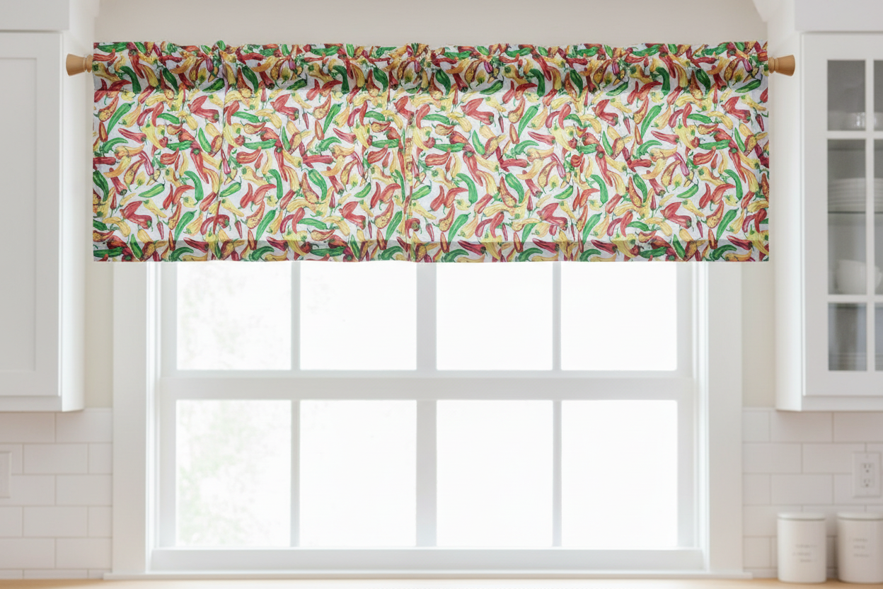Cotton Window Valance Fruits Print 58 Inch Wide Chili Peppers - White
