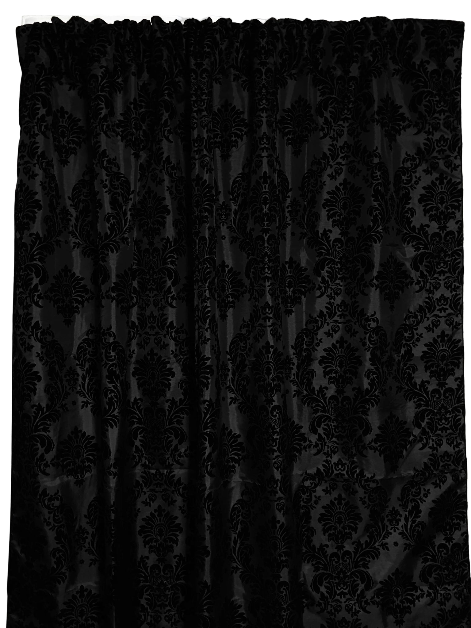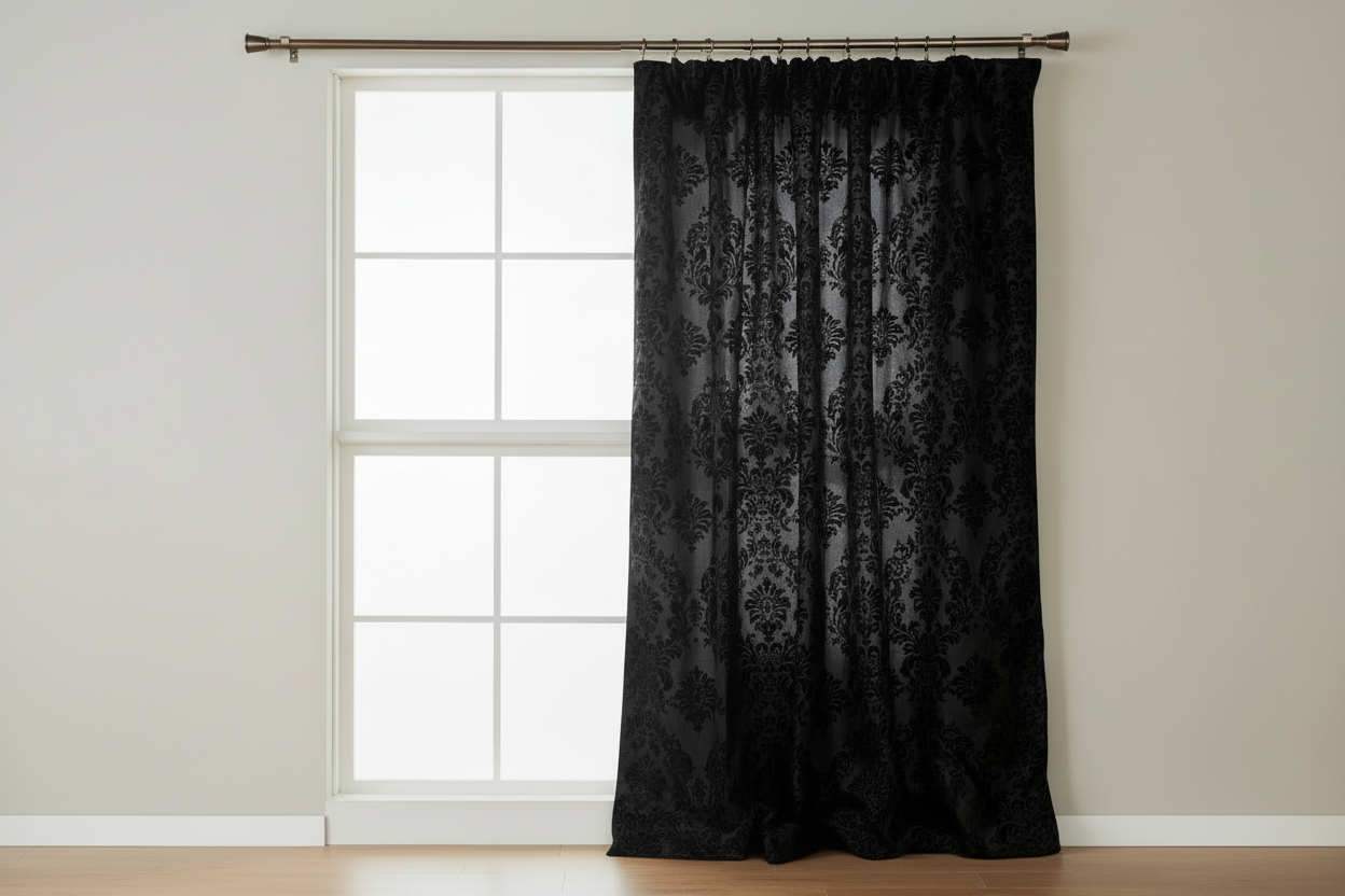 Flocking Damask Taffeta Window Curtain 56 Inch Wide - Black on Black