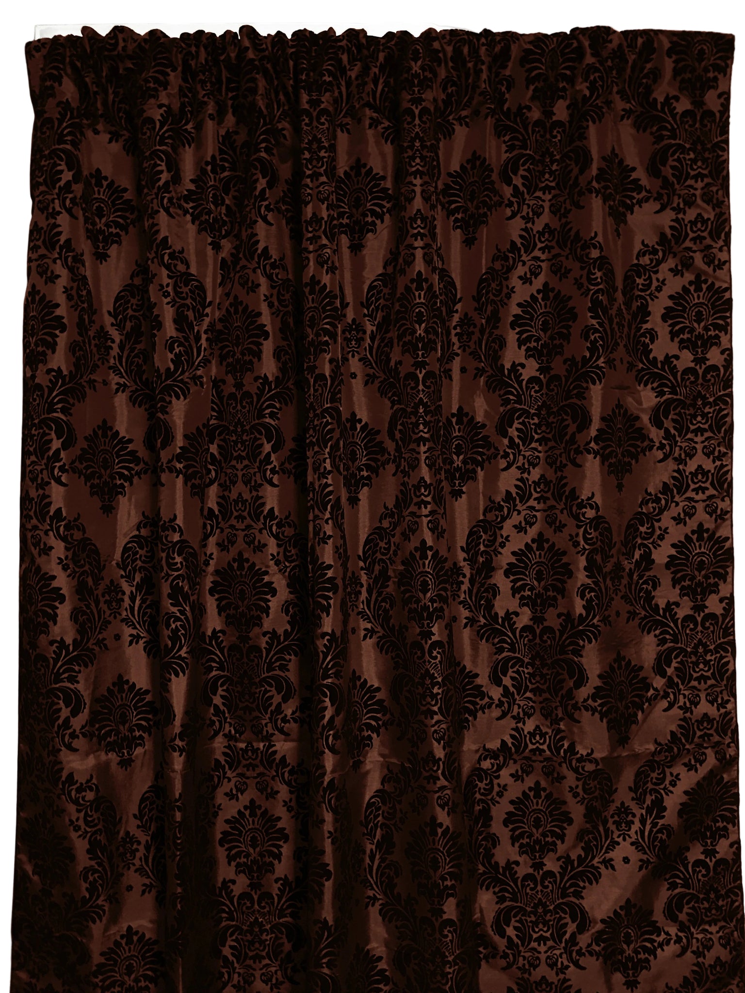 Flocking Damask Taffeta Window Curtain 56 Inch Wide - Black on Brown