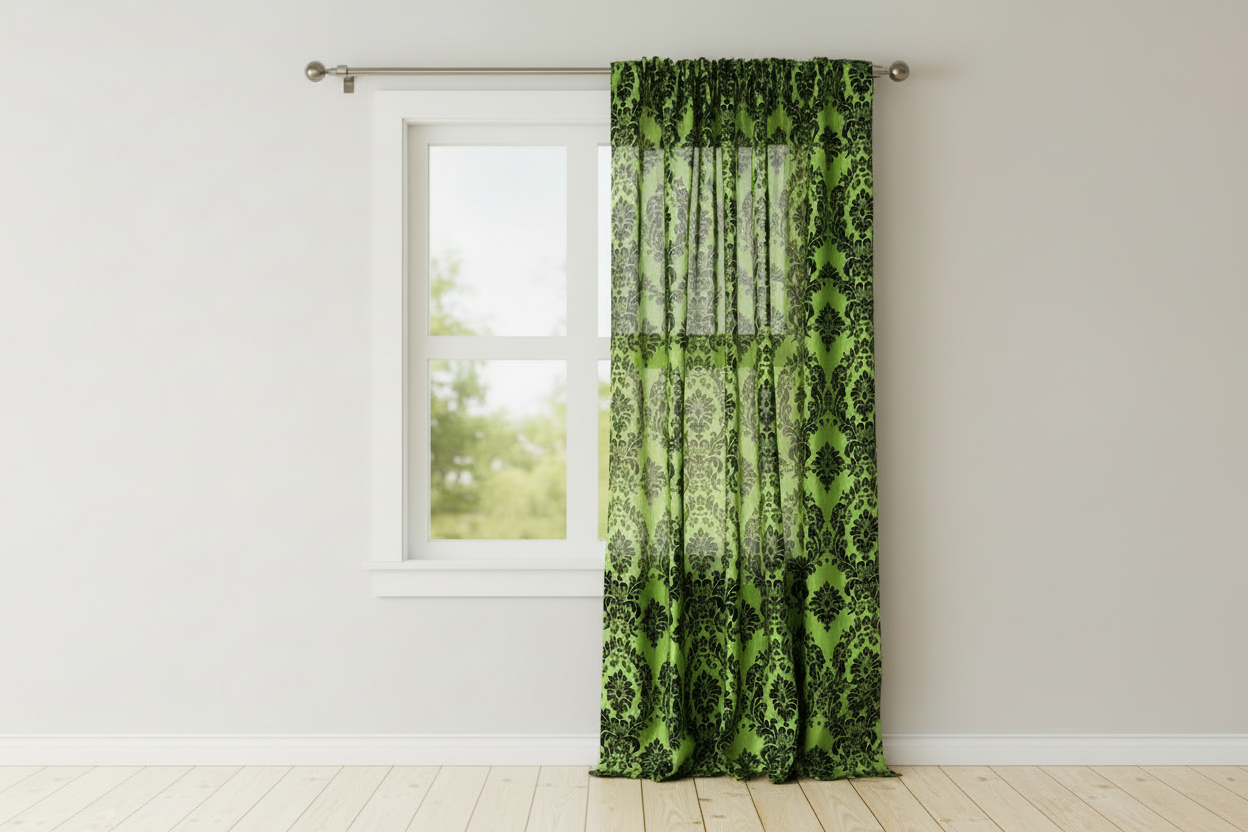 Flocking Damask Taffeta Window Curtain 56 Inch Wide - Lime Green