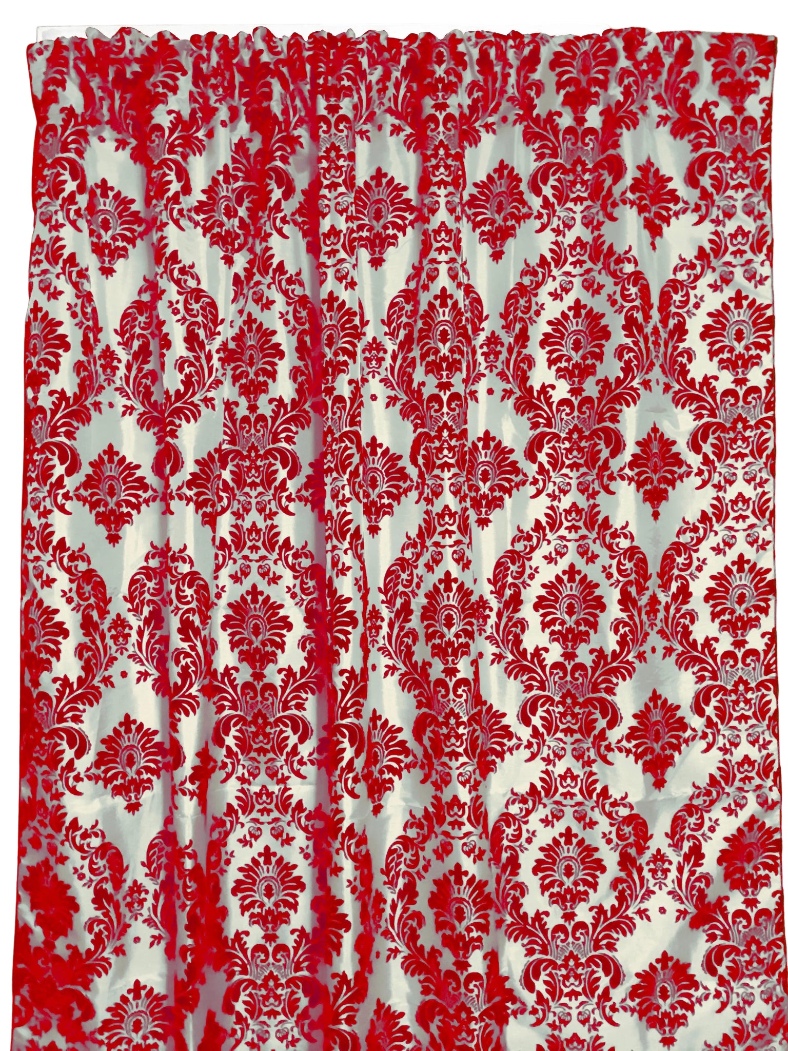 Flocking Damask Taffeta Window Curtain 56 Inch Wide - Red on White