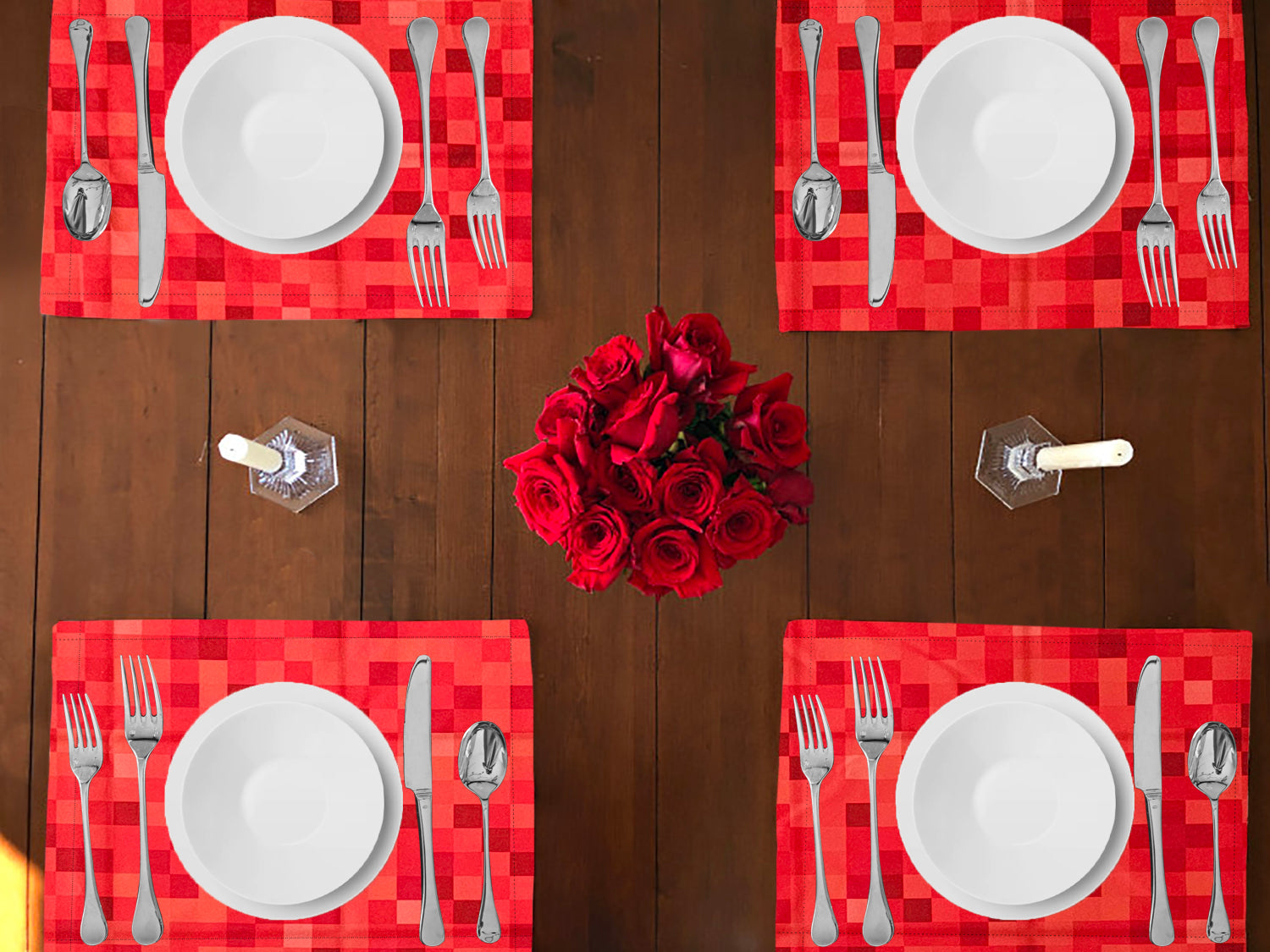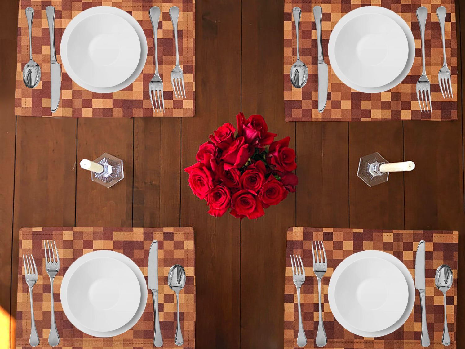 Poplin Printed Pixelated Squares Dinner Table Placemats Holiday Home Decoration 13" x 19" (Pack of 4)