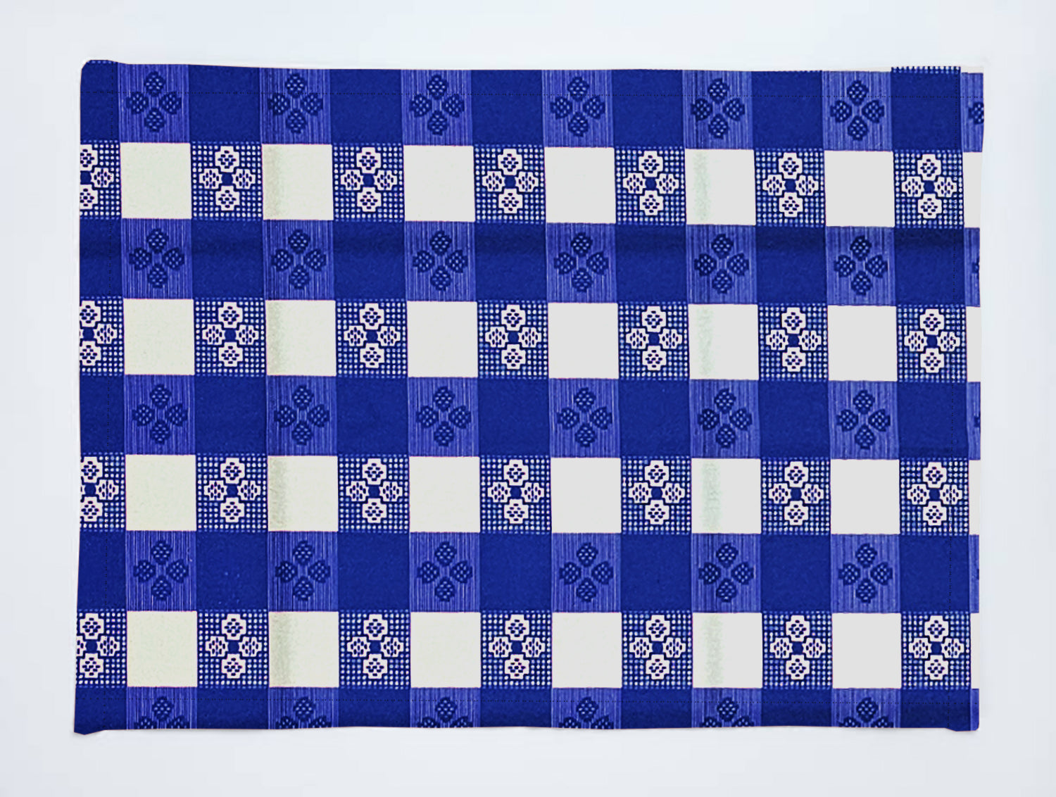 These poplin placemats are made from a polyester fabric with a printed damask pattern. Hemmed edges and lined for extra thickness.